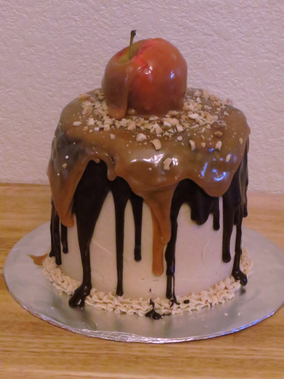 This cake is all about Fall and I just love it: Salted Caramel Buttercream hugging an Apple Cinnamon Cake with salted caramel drizzled over the top.
